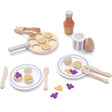 Setet är komplett utrustat med allt som behövs för en autentisk pannkaksupplevelse - inklusive plättlägg, sex plättar, sirapsflaska, syltburk, tallrikar, bestick och roliga detaljer som sylt- och gräddklickar. Perfekt för barn från 2 år som vill leka och lära sig matlagningens grunder på ett lekfullt sätt.