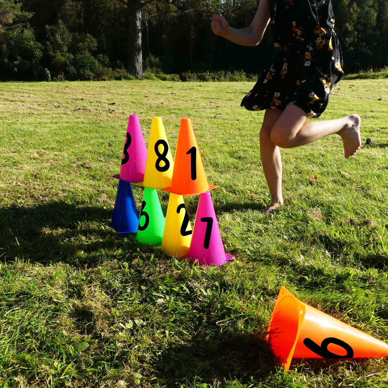 Varje kon är 23 cm hög och ger barn möjlighet att utveckla sin fantasi genom att skapa egna spännande lekar och övningar.
