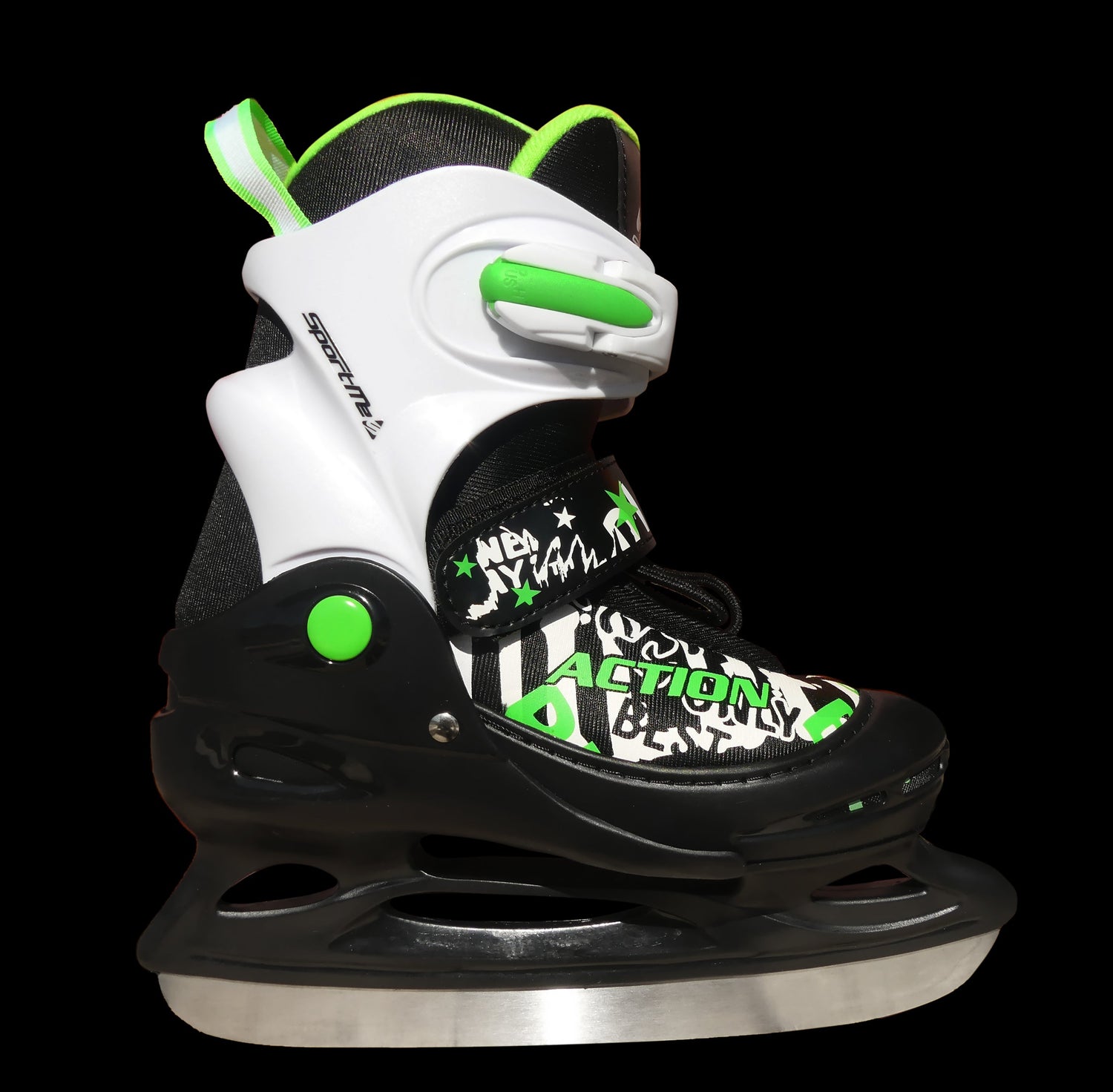 Skridskor i grön färg som är perfekt anpassade för barn mellan 26-29 storlek. Dessa justerbara skridskor växer med barnet och erbjuder hela 4 olika storlekar, vilket gör dem till en smart och ekonomisk investering för föräldrar.