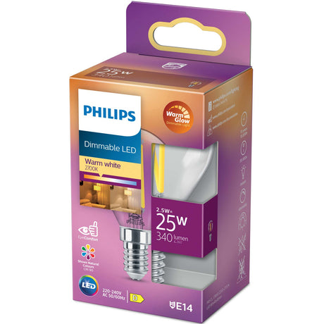 Philips LED E14 Klot 2,5W (25W) Klar Dim WarmGlow 340 lm